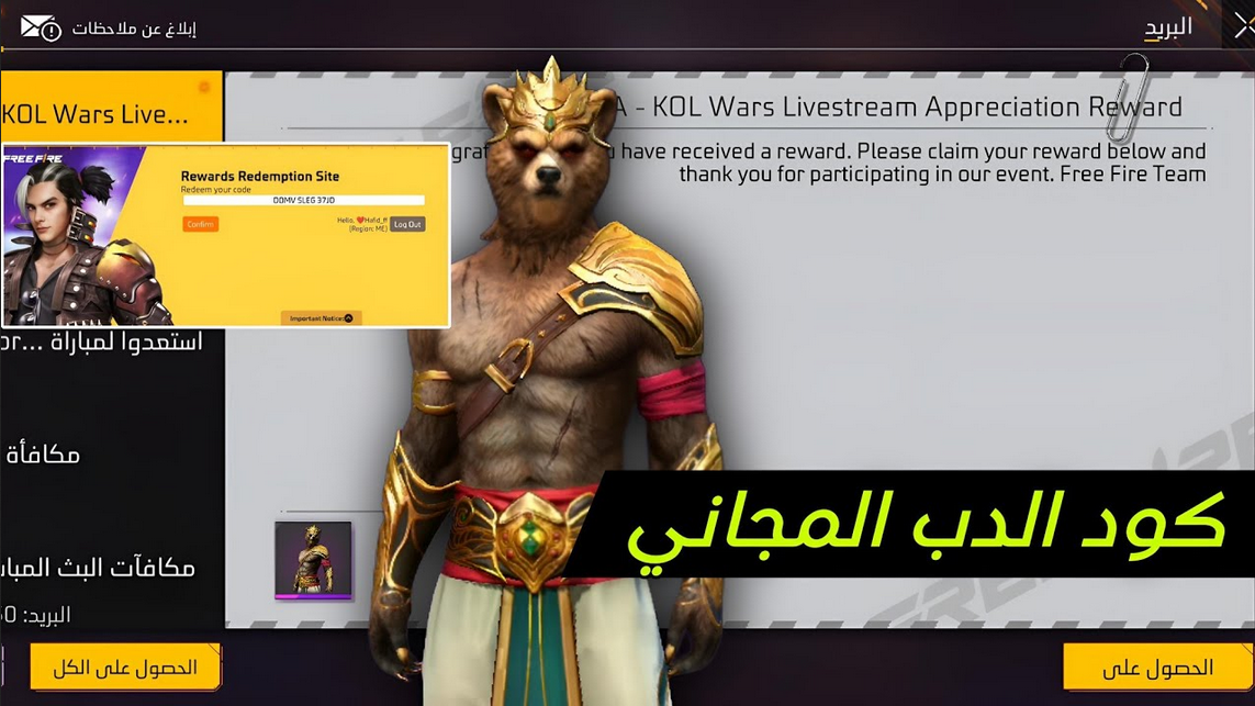 نبذة مختصرة موقع استبدال اكواد فري فاير سكن الدب