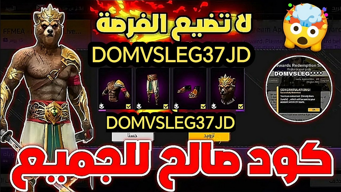 - اذا كنت تقصد سكن الدب في لعبة Free Fire باستخدام كود مثل DOMVSLEG37JD فالكود DOMVSLEG37JD تم الإعلان عنه رسميًا وعرضه للاستخدام في أوائل عام 2025 بما في ذلك يناير 2025. وآخر تقارير منشورة تفيد بأن اكواد فري فاير قد لا تزال متوفرًا وقابلًا للاسترداد في أوائل 2025.