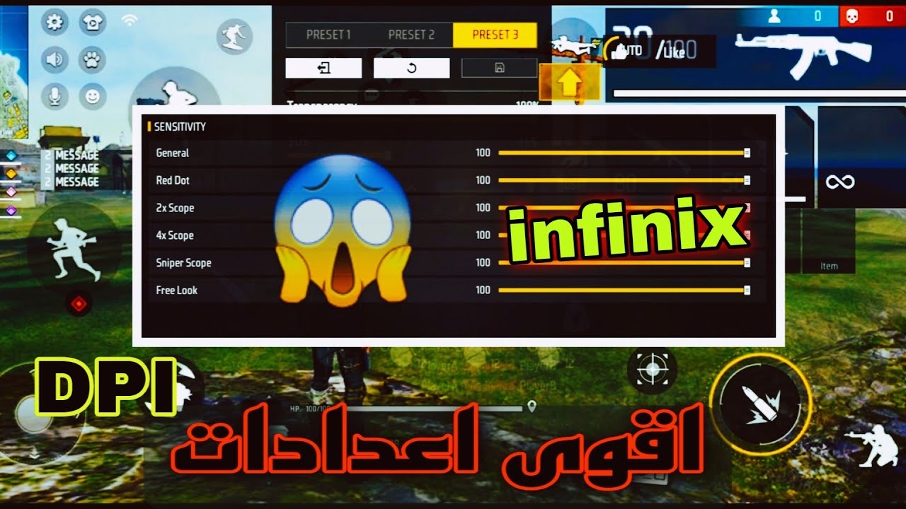 - حساسية الكاميرا: إعدادات حساسية الكاميرا تتحكم في مدى سرعة تحرك الكاميرا عندما تقوم بالسحب على الشاشة. وهذا مهم بشكل خاص للتحكم في الكاميرا عند الحركة واستكشاف البيئة المحيطة. وإعداد حساسية فري فاير free fire infinix smart 7 مهكرة يمكن أن يساعد في التحكم السريع في الكاميرا أثناء التنقل والمراقبة بدون أن تفقد التحكم أو الدقة.