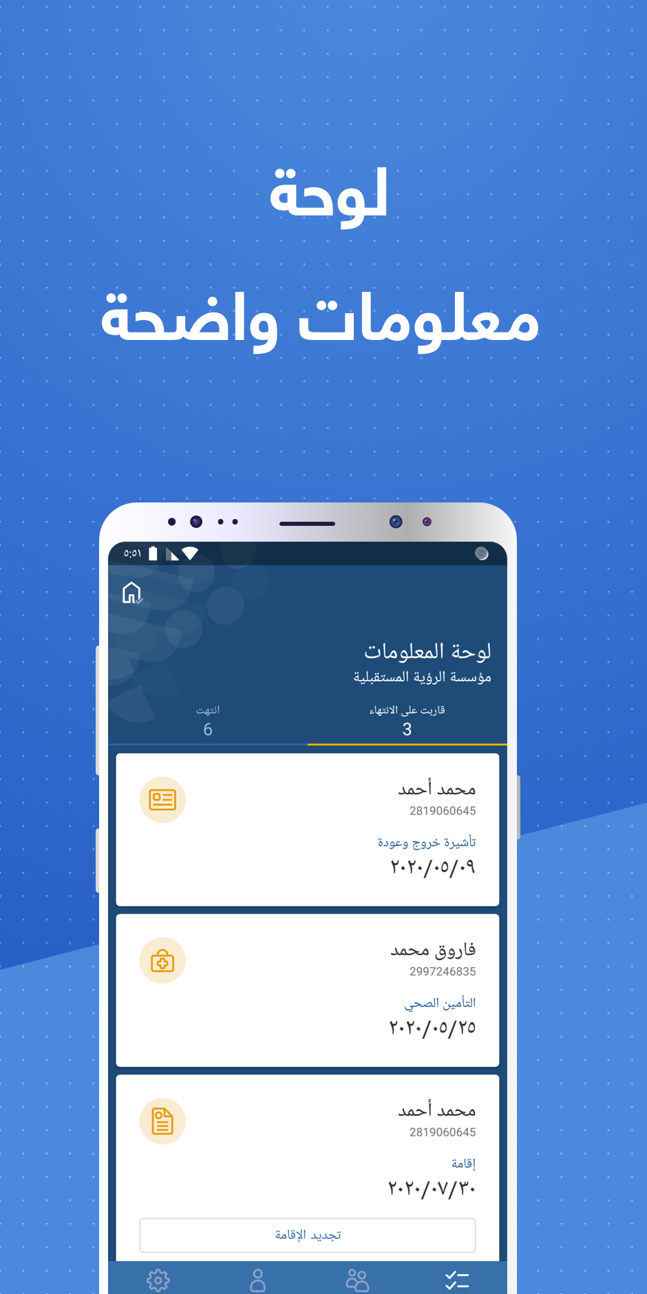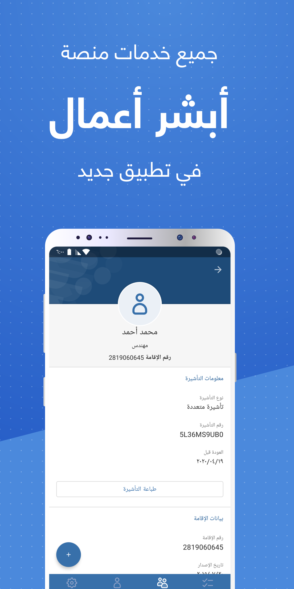 لتشغيل تطبيق أبشر أعمال Absher مهكر يجب على المستخدم تحميل التطبيق على جهازك. ثم بعد تحميل التطبيق يجب على المستخدم إنشاء حساب خاص به عبر تعبئة البيانات المطلوبة والتحقق منها. وبعد إنشاء الحساب يمكن للمستخدم الدخول إلى التطبيق واستخدام العديد من الخدمات المتاحة مثل تقديم طلبات التأشيرات والتصاريح اللازمة وتسديد الفواتير الحكومية والرسوم والاطلاع على الإجراءات والتحديثات الهامة من الجهات الحكومية. كنا تستطيع من خلاله إدارة الموظفين لديلك مثل إصدار تأشيرات من القائمة الرئيسية لذا قم باختيار “إدارة الموظفين” ثم اختر “إصدار تأشيرة” وبعد ذلك أدخل بيانات الموظف المطلوبة وتابع التعليمات لإصدار التأشيرة. أما لتجديد الإقامة من القائمة الرئيسية اختر “إدارة الموظفين” ثم اختر “تجديد الإقامة” حدد الموظف الذي ترغب في تجديد إقامته وأكمل الإجراءات المطلوبة.