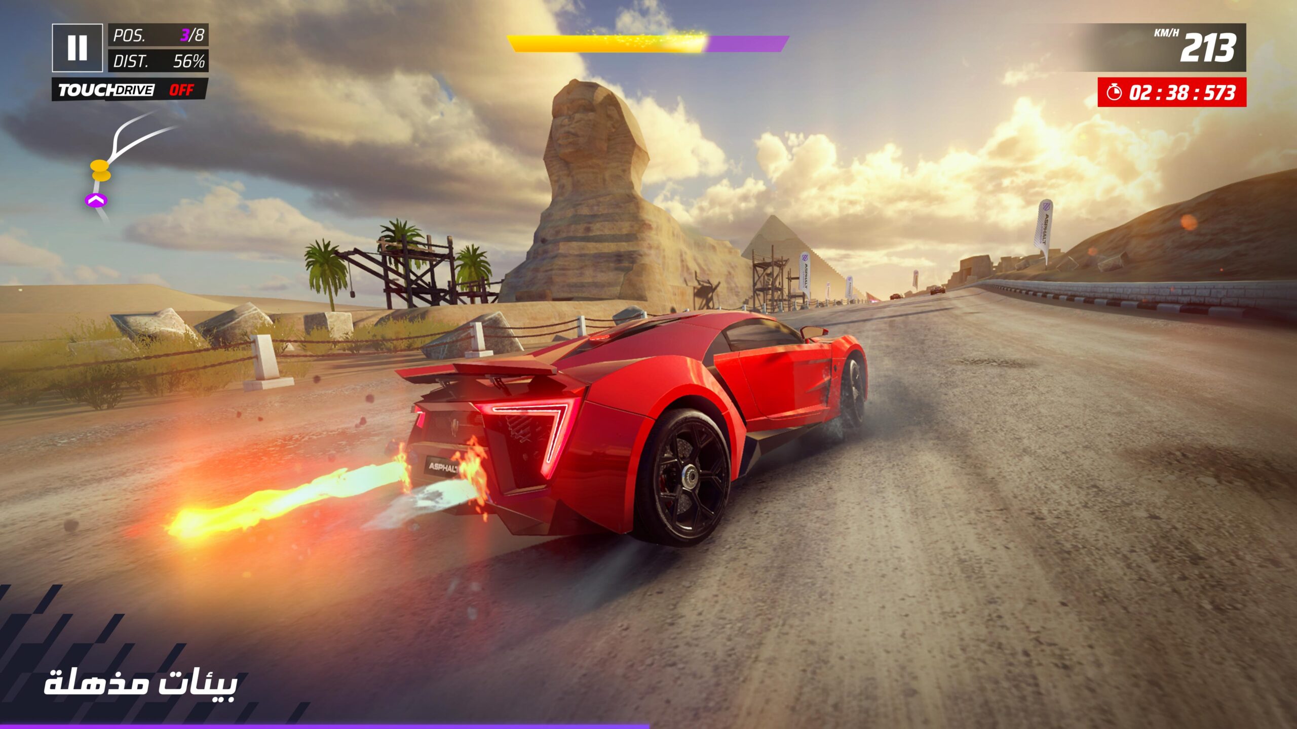 - باختصار. إن لعبة Asphalt 9: Legends هي لعبة مثيرة ومشوقة تجمع بين الحماسة والتشويق في عالم السباقات. وذلك بفضل الرسومات المذهلة والسيارات الرائعة وطريقة اللعب السلسة. فلا مفر من أن تكون هذه اللعبة واحدة من أفضل ألعاب السباقات المتاحة حاليًا على الهواتف الذكية.