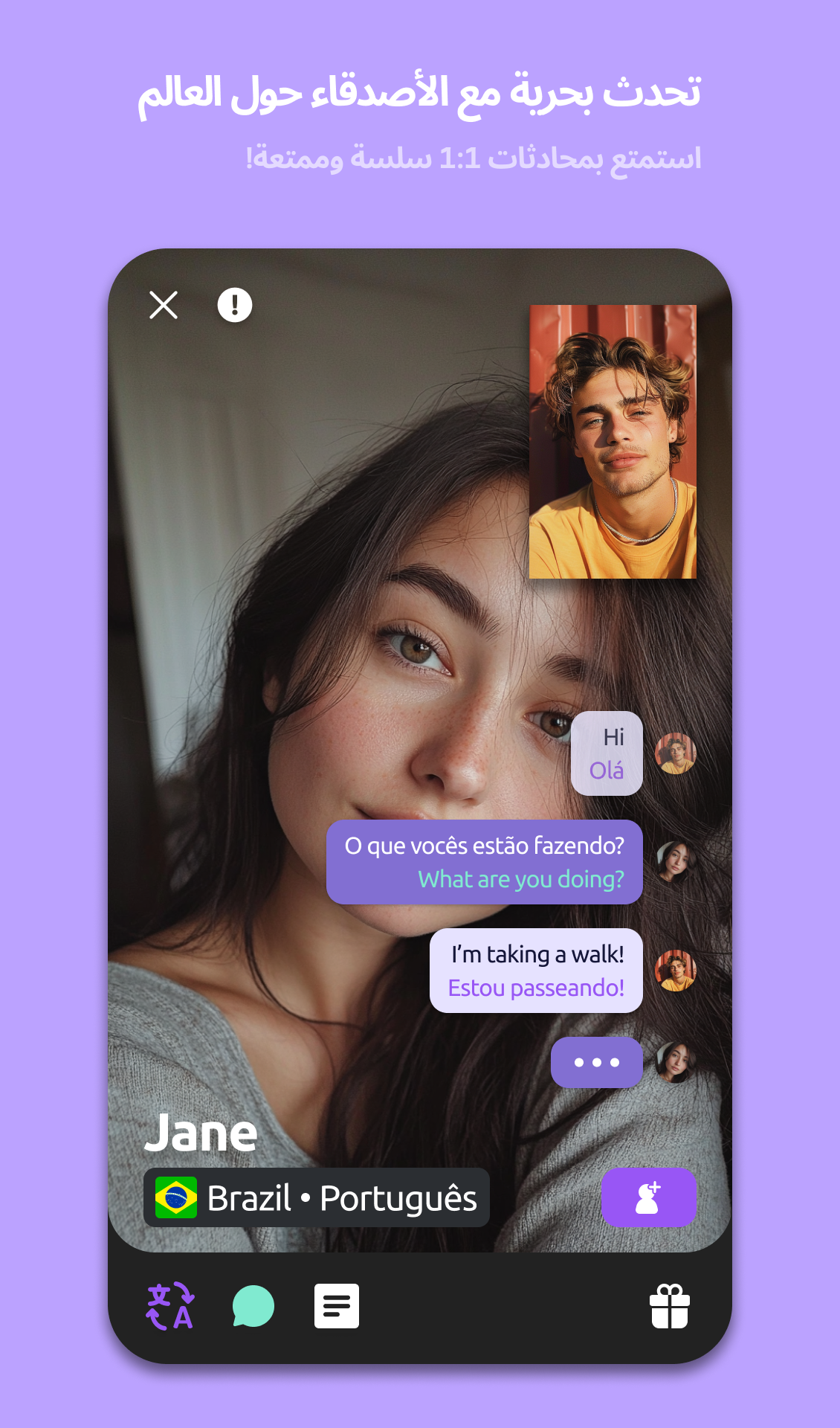- يحتوي التطبيق على فلاتر وتأثيرات مرئية يمكن استخدامها أثناء المحادثة ما يضيف طابعًا ممتعًا ومرحًا للتفاعل بين الطرفين. وتُعد هذه الإضافات المرئية من عوامل الجذب المهمة خصوصًا لدى المستخدمين الشباب الذين يفضلون الأجواء الترفيهية في التواصل الرقمي.