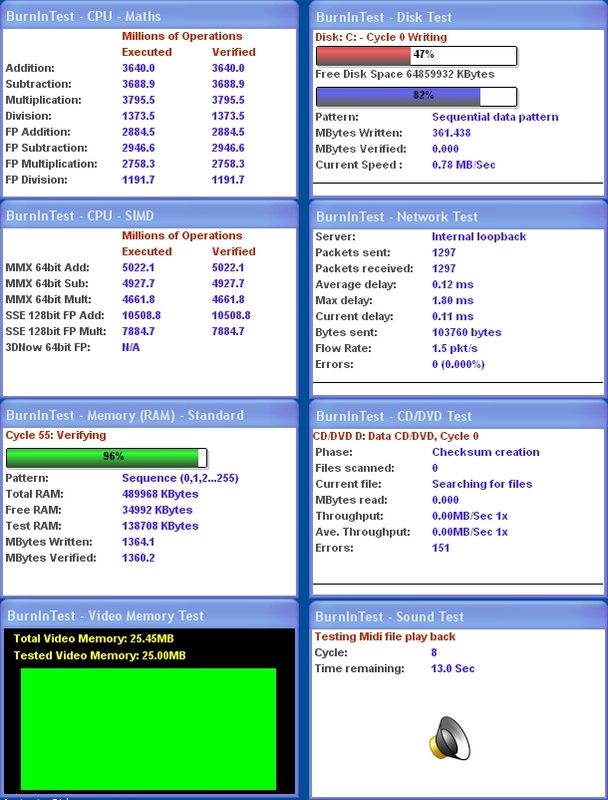 - من المميزات المهمة أيضا أن BurnInTest Professional يعتمد على أسلوب محاكاة الضغط العالي على المكونات بحيث يعمل على تشغيلها بكامل طاقتها لفترة زمنية محددة. كذلك يوفر أدوات لمراقبة درجات الحرارة أثناء الاختبار مما يساعد على تجنب حدوث تلف أو مشاكل بسبب ارتفاع الحرارة.