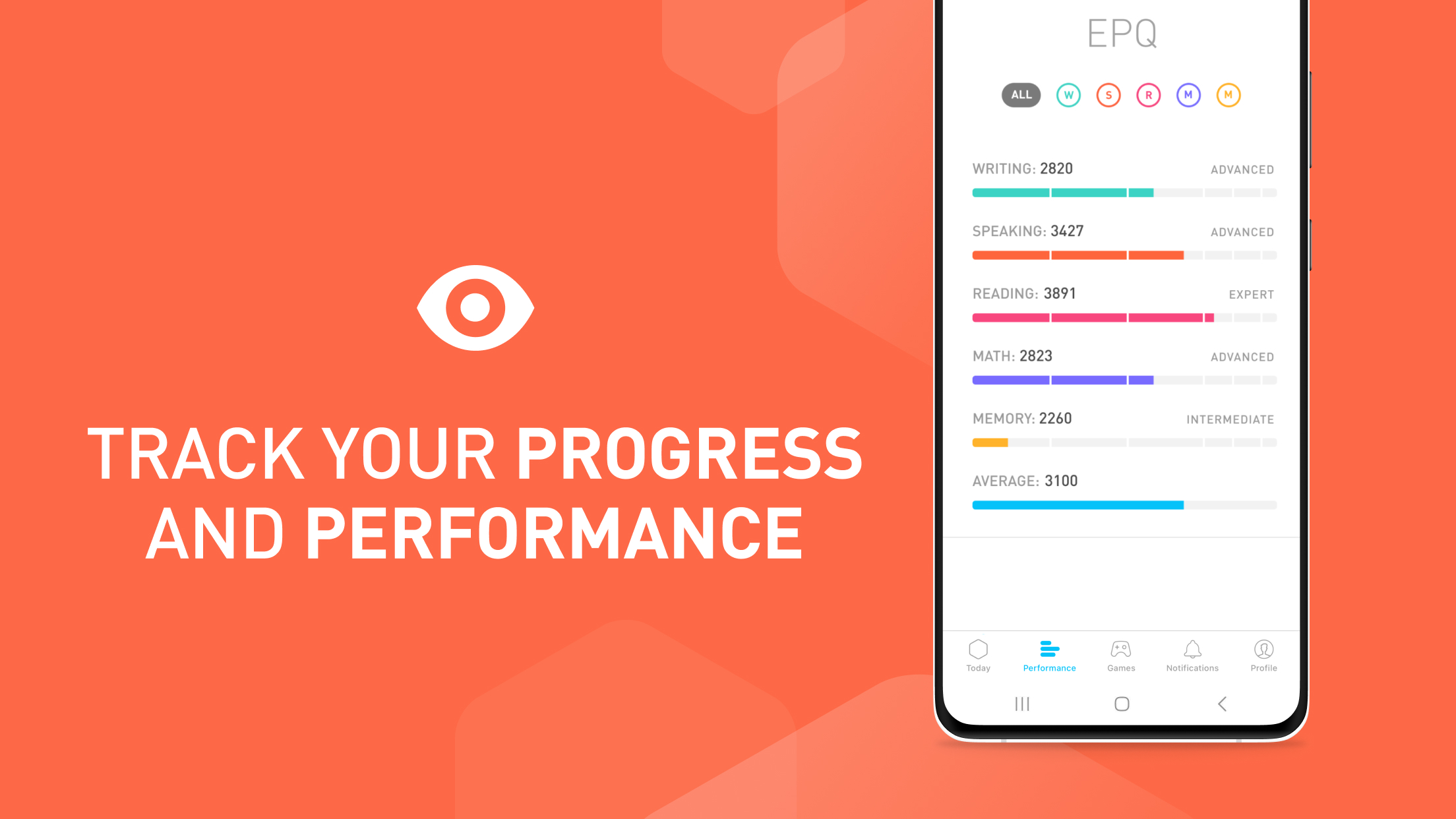 - بالإضافة إلى ذلك يتيح لك التطبيق تتبع تقدمك عبر تقييمات دورية وإحصاءات توضح تطور قدراتك العقلية على مدى الوقت. حيث بفضل وجود تحديات يومية ومسابقات تحفيزية. بالإضافة إلي ذلك يشجع التطبيق على الاستمرار والتقدم في تحسين القدرات العقلية بشكل دوري ومنتظم. لذا