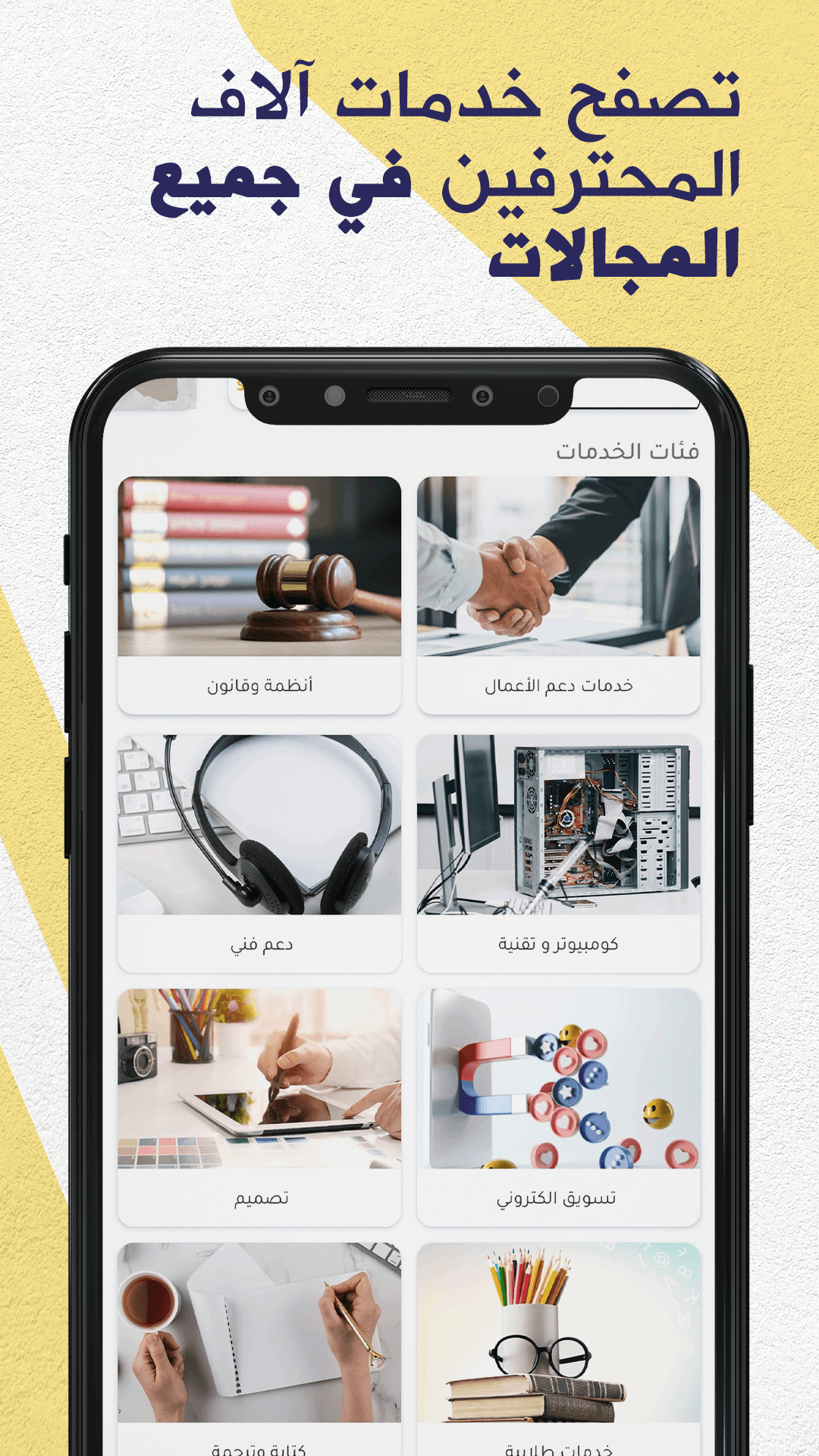 - البدء في الاستخدام الفعلي: أصبح التطبيق الآن جاهزًا للاستخدام. لذا ابدأ بالتصفح والبحث عن الخدمات أو الطلبات التي تهمك. حيث يمكنك نشر طلبك الأول كعميل من خلال زر “إنشاء طلب” وكتابة التفاصيل والميزانية.