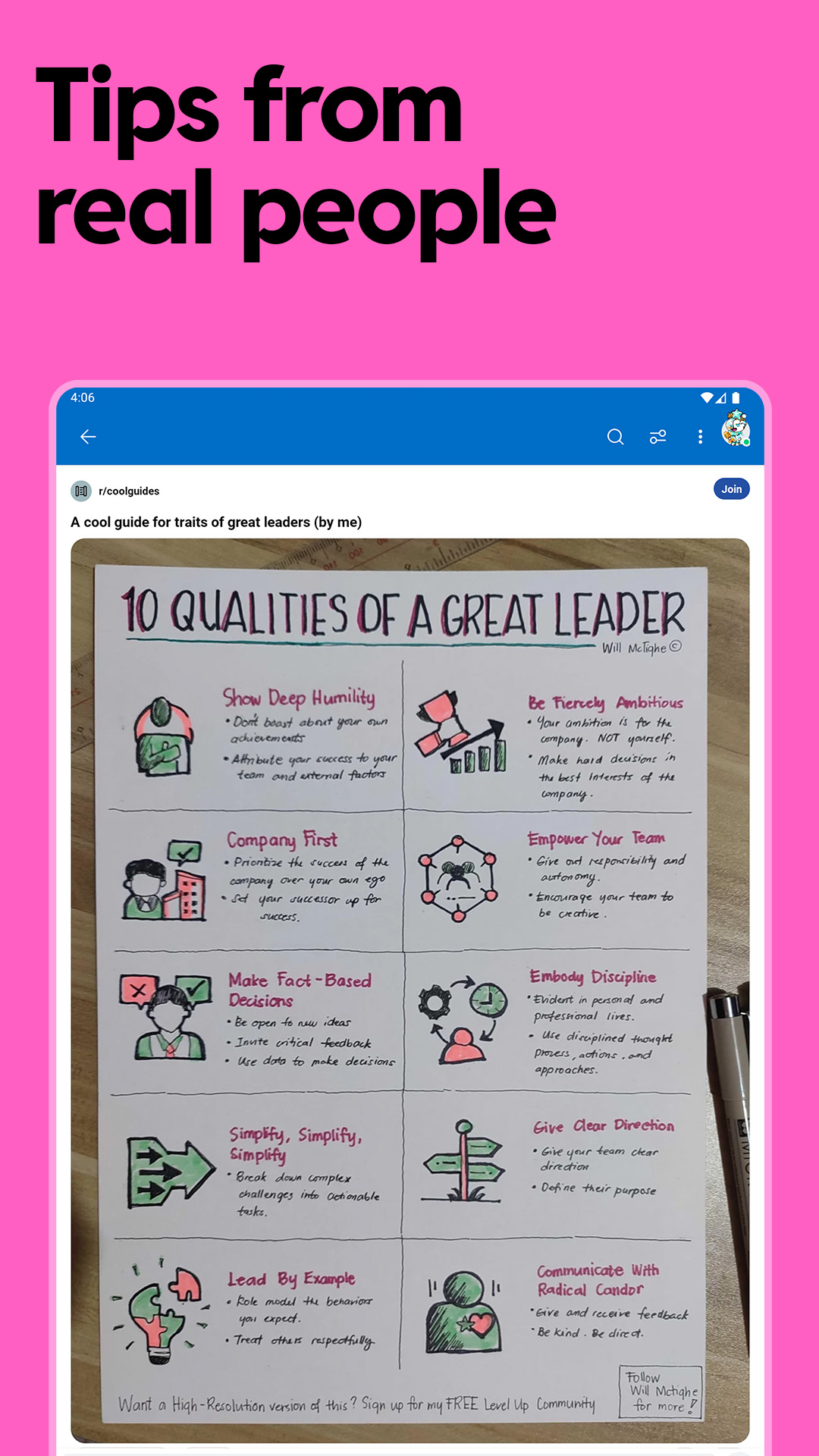 - بدء الاستخدام: بمجرد تسجيل الدخول ستجد نفسك في الصفحة الرئيسية للتطبيق Reddit مهكر حيث تعرض لك المشاركات الشائعة من المجتمعات التي تتابعها. لذا يمكنك استكشاف المجتمعات الفرعية الجديدة باستخدام شريط البحث في أعلى الشاشة. وللانضمام إلى أي مجتمع انقر على اسمه ثم اضغط على زر “انضم” أو “Join”. ثم بعد ذلك يمكنك التفاعل مع المشاركات والتعليقات مما يجعل تجربة استخدام ريدِيت غنية وممتعة.