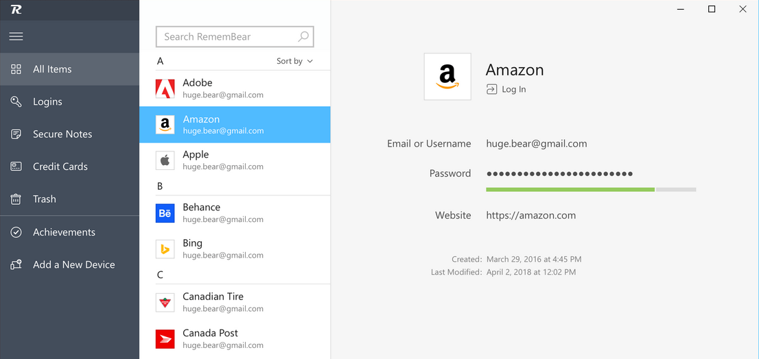 - توليد وحفظ آمن: يتميز RememBear بقدرته على توليد كلمات مرور قوية وعشوائية يصعب اختراقها مع الاحتفاظ بها تلقائياً في خزنة مشفرة. كما تعتمد عملية التشفير على أحدث المعايير التقنية لضمان بقاء بياناتك محمية من أي محاولات وصول غير مصرح بها.