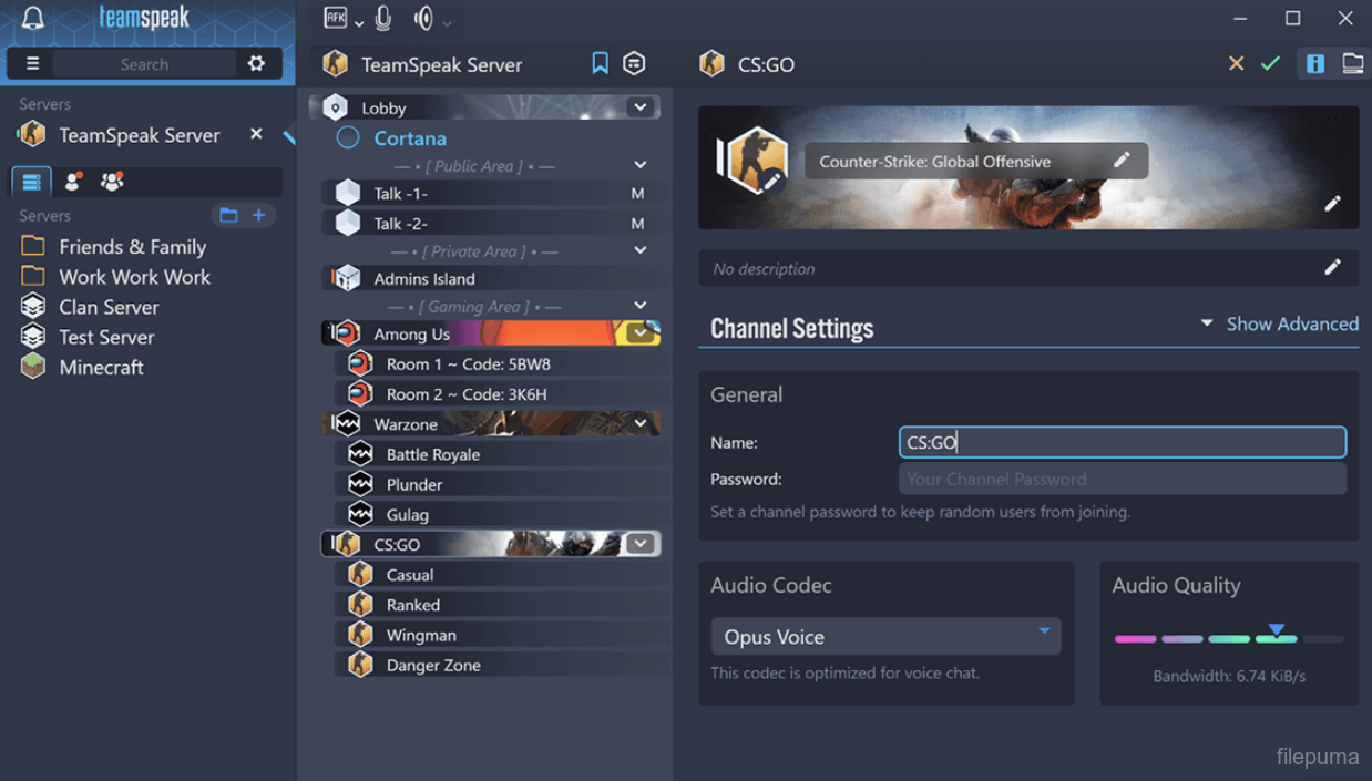 - واحدة من أبرز مميزات تحميل برنامج TeamSpeak مهكر للكمبيوتر هي جودة الصوت العالية فهو يستخدم تقنية متقدمة لضمان نقاء الصوت أثناء المحادثات حتى مع وجود اتصال إنترنت ضعيف. كما يتميز البرنامج بقدرته على تقليل التشويش وإلغاء الضوضاء مما يوفر تجربة استماع واضحة ومثالية للمستخدمين سواء أثناء اللعب أو الاجتماعات.