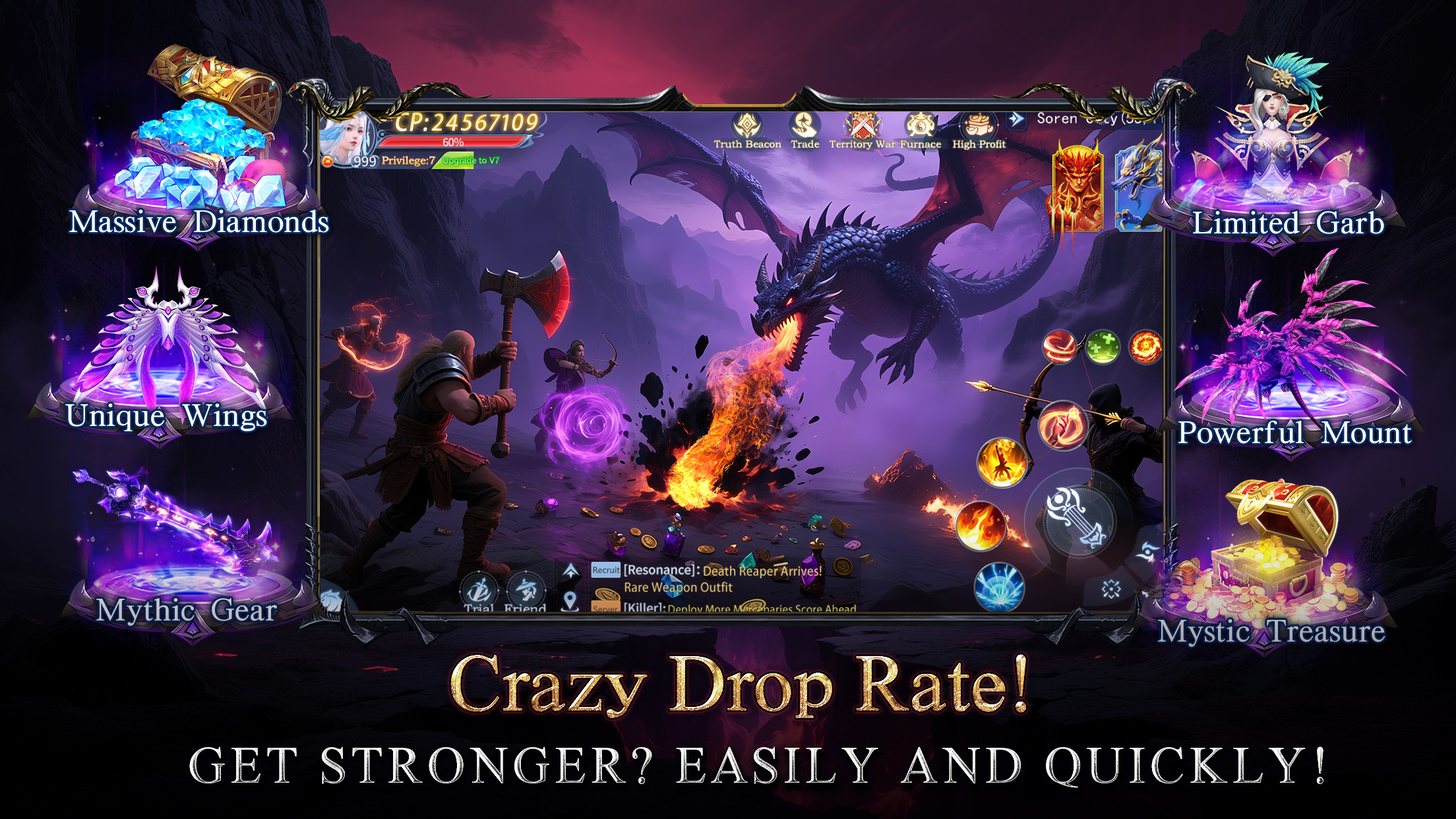 - أبطال أسطوريون وقدرات خارقة: في قلب هذه الحروب يقف الأبطال الأسطوريون كأقوى أدوات اللاعب. بالإضافة إلى ذلك يمكنك تطوير أبطالك الذين يحملون دماءً إلهية ورفع مستواهم لاكتساب مهارات جديدة وقدرات خارقة تمكنهم من قلب tide المعركة بلحظة.